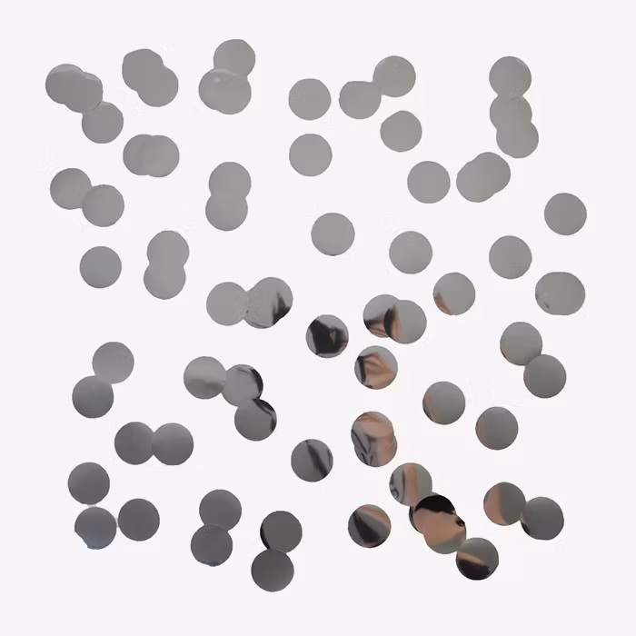 Denna silverfärgade konfetti har runda blad och är tillverkad av Myllar papper.